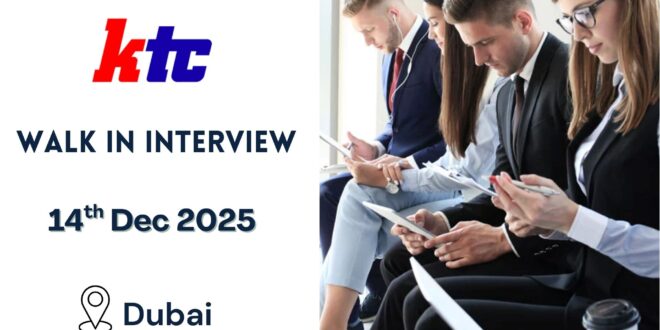 Are you in search of exciting career opportunities in UAE? Ktc International has announced its latest Walk in Interview. They are looking for talented and passionate individuals to join their team. Attend the Interview with your latest CV. Read on to discover more about this exciting Job vacancies and details.